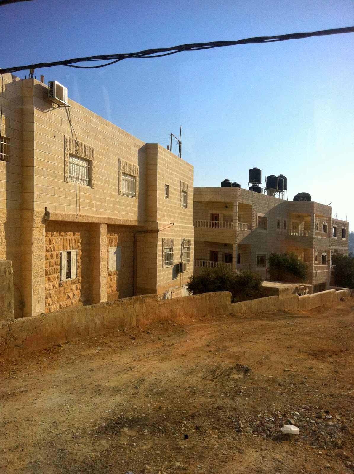 Abitazioni ed edifici quanto mai simili tra loro formano agglomerati urbani compatti, chiusi come un riccio, sono piccole macchie monocromatiche dal colore del rivestimenti in basalto delle costruzioni, sparse in mezzo all'arido paesaggio desertico, collegate da strade illibate ed aiuole non ancora fiorite.